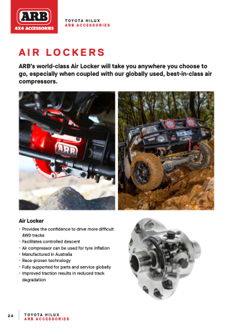 ARB’s world-class Air Locker will take you anywhere you choose to go, especially when coupled with our globally used, best-in-class air compressors.