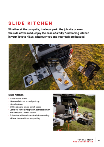 the side of the road, enjoy the ease of a fully functioning kitchen in your Toyota HiLux, wherever you and your 4WD are headed.