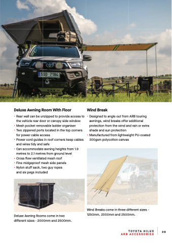 • Designed to angle out from ARB touring awnings, wind breaks offer additional protection from the wind and rain or extra shade and sun protection