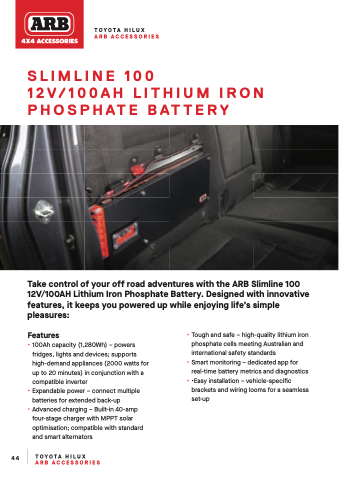Take control of your off road adventures with the ARB Slimline 100 12V/100AH Lithium Iron Phosphate Battery. Designed with innovative features, it keeps you powered up while enjoying life’s simple pleasures: