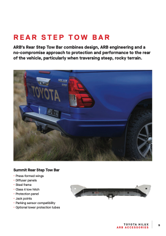 ARB’s Rear Step Tow Bar combines design, ARB engineering and a no-compromise approach to protection and performance to the rear of the vehicle, particularly when traversing steep, rocky terrain.