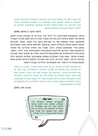 לפי גישת ACT על האדם לזהות את הערכים החשובים והמרכזיים בחייו,