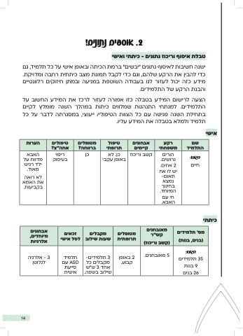 טבלת איסוף וריכוז נתונים - כיתתי ואישי