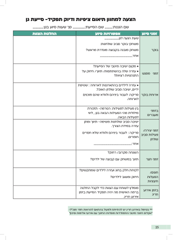 שם הגננת:_____ שם הסייעת:________ סך שעות סיוע בגן:_______