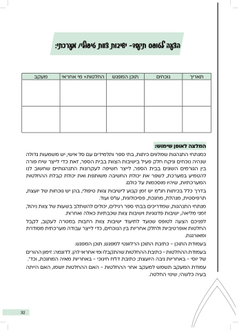 בעמודת ההחלטות - כתיבת ההחלטות שהתקבלו ומי אחראי להן. לדוגמה: זימון ההורים