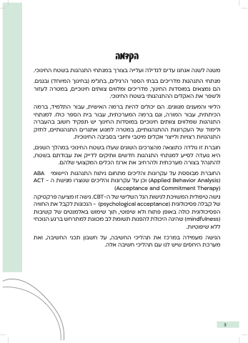 החוברת מבוססת על עקרונות והליכים מתחום ניתוח התנהגות היישומי ABA