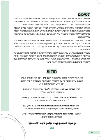 תודה למתי"א בת ים - שנתנו לי דרור לרעיונות וליוזמות, ובכך אפשרו