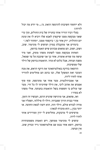 לא בסדר? ואז, פתאום, אני מרגישה שהגיעִ הרגעִ, ועִכשיו זה הזמן. אחרי כברת הדרך שעִברתי, הילד לו פיללתי, ושעִליו אני