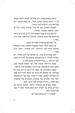 אבל המוח... הוא לא מצליח לתת הוראה לגוף. בשלב מסוים אני מתחילה לרעִוד. האחות בודקת עִם המרדים מדועִ אני רועִדת. הוא תופס פיקוד ונותן לי כמה