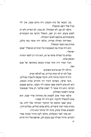 יום אחד לפני המקלחת, ִעִי ָל ִאי לקח סידור ממדף ספרי הקודש. סידור תפילה קטן בצבעִ לבן, שהשם שלי היה חרוט 38