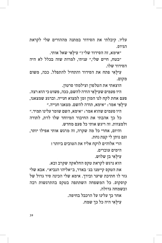 ״אימא, זה הסידור שלי?״ ִעִי ָל ִאי שאל אותי. ״בטח, חיים שלי,״ עִניתי, למרות שזה בכלל לא היה