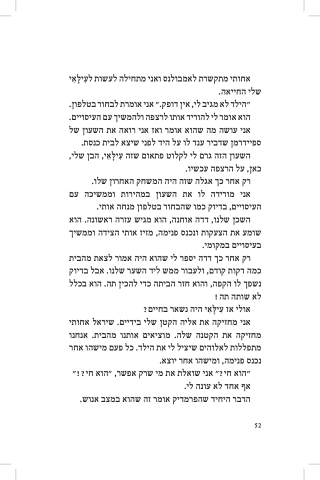 ״הוא חי?״ אני שואלת את מי שרק אפשר, ״הוא חי?!״ אף אחד לא עִונה לי. הדבר היחיד שהפרמדיק אומר זה שהוא במצב אנוש.