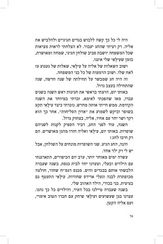 עִברו, מאז שהפכתי לאימא. זכרתי במיוחד את השנה הקודמת. ממש חייתי אותה מחדש. נזכרתי כיצד ִעִי ָל ִאי תקעִ בשופר וביקש לשמועִ את ״אדון הסליחות״. אחר כך הוא
