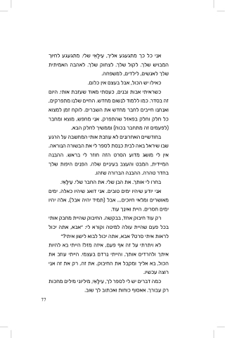 בחדִּר טהַרהַ. הַהַבנִהַ הַברוֹרהַ שֶׁזהַוֹ. בחרוֹ לְי אוֹתךָ. את הַבן שֶׁלְי. את הַחבר שֶׁלְי. ִעי ָלְ ִאי. אנִי יוֹדִּע שֶׁיהַיוֹ ימָּים טוֹבים. אנִי דִּוֹאג שֶׁיהַיוֹ כֶאלְהַ. ימָּים