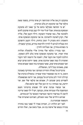 הזאת, כי זה מה שמשאיר אותי שפויה! בתפילת עִרבית של קהילת יהודי לוב מדברים עִל ַמ ְכת ו ב. אני יודעִת שכשאעִלה לשמיים בזמן שנכתב לי, אפגוש את ִעִי ָל ִאי שלי שם. אני