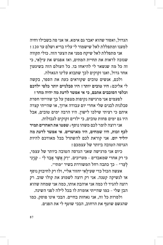 אחד גדול, ואנו זקוקים לכך שתבוא עִלינו הגאולה. ולכם, אנשים טובים שקוראים כעִת את הספר, בקשה לי אליכם: היו טובים יותר! היו סבלניים יותר כלפי ילדכם