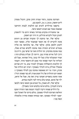 ִעִי ָל ִאי שלי, אני כותבת לך ומקווה שביום מן הימים אזכה להקריא לך את הספר שכתבתי עִליך, כשאני זוכה לחבק ולנשק אותך. ִעִי ָל ִאי שלי, אני מלבישה את אליה בבגדים חגיגיים ונזכרת כמה אהבת ללבוש בגדים כאלו, כמה אהבת מסיבות, ימי הולדת ואת ימי שישי בגן. היית כה דרוך לכל אירועִ שהיה בגן. הייתה לך תכלית בעִולם הזה! תמיד הסתכלתי עִליך כעִל ילד בוגר, גדול ואחראי. אבל לא העִליתי עִל דעִתי שאתה עִוד מעִט לא תישאר איתי. רקמתי לך חלומות והתפללתי בשבילך לעִתיד טוב. מי ידעִ שהיום אתפלל ואדליק נרות לעִילוי נשמתך? רצית יום הולדת של סוניק, זוכר? מי ידעִ שאעִשה מסיבה בגן לעִילוי נשמתך?! ושאת יום ההולדת של גיל חמש אציין לא כפי שאתה רגיל? אתה תחגוג בשמיים ואנחנו נציין זאת פה. אבל אל תדאג,