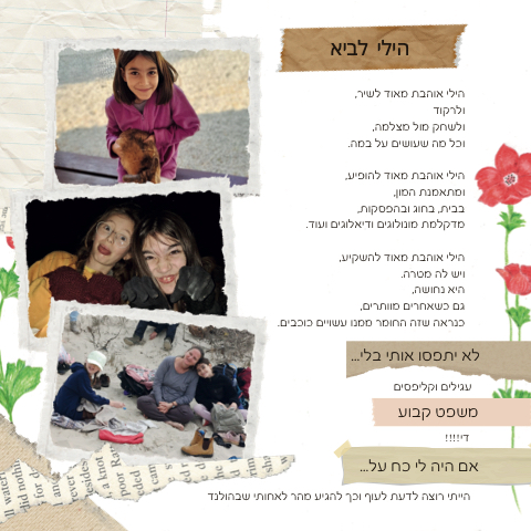 הילי אוהבת מאוד לשיר, ולרקוד ולשחק מול מצלמה, וכל מה שעושים על במה.