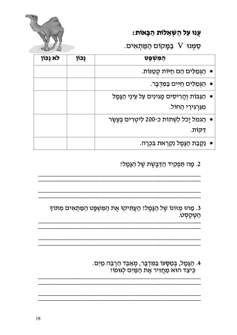 הַגָמָל, בְמַסָעוֹ בַמִ דְ בָר, מְ אַ בֵד הַרְ בֵה מַיִם.