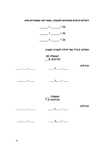 השלימו תרגילי כפל וחילוק לתבניות הבאות: