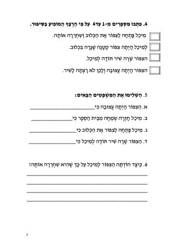 ד. הַצִפוֹר שָׁרָ ה שִׁ יר תּוֹדָה לְמִ יכַל כִי________________