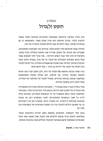 הרב הגדיר בשיעור ש'חופש' משמעותו שהדברים פתוחים ותמיד אפשר להוסיף ולברר. מכיוון שחופש הוא עניין עמוק מאוד, והשתמשנו בו גם בכותרת השיעור, ננסה להקדיש כמה מילים למהות ההגדרה של הרב.