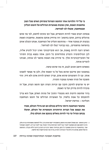 הזו של חופש, שהוא בית כלא אדיר מבחינה רוחנית, גוררת את האדם לנקודה של חולשה. מחשבת האמונה המתרוממת שאינה בורחת 137