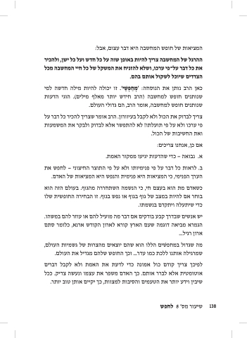 כאן הרב נותן את הנוסחה: ' ֹמ ַח ֹּו ֵשׁי'. זו יכולה להיות מילה חדשה למי שנותנים חופש למחשבה (הרב חידש יותר מאלף מילים). הוגי הדעות שנותנים חופש למחשבה, אומר הרב, הם גדולי העולם.
