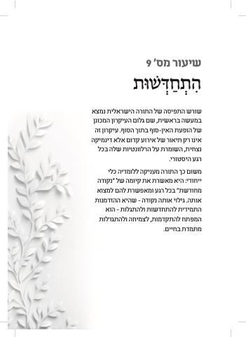 משום כך התורה מעניקה ללומדיה כלי ייחודי: היא מאשרת את קיומה של "נקודה מחודשת" בכל רגע ומאפשרת להם למצוא