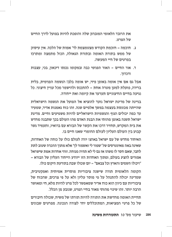 בניינה של מדינת ישראל נועד להוציא אל הפועל את הנשמה הישראלית שהייתה מכונסת בעצמה במשך אלפיים שנה. זהו כוח נאמנות אדיר, שמעיד עד כמה יכולים הגוף והגשמיות הישראליים להיות משפיעים וחיים. מדינת ישראל תשנה באופן מהותי את הבנת האדם מהו העולם בכך שתבנה מחדש את בית המקדש, תחזיר דרכו את הקשר של הבורא עם ברואיו, ותעמיד גשר