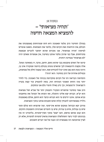 לציין שהיציאה הזו מאפשרת לנו הבנה של שני דברים חשובים: חיים שלי! המצאה - המציאות ולצאת 17