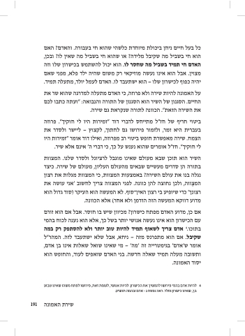 על האמונה להיות שירה ולא פרוזה, כי האדם מתעלה למדרגה שהוא שר את החיים. הסגנון של השיר הוא הסגנון של התורה והנבואה: "ועתה כתבו לכם את השירה הזאת". הכוונה לתורה שנקראת גם שירה.