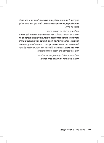 שאלה: משמע שלכל רגע יש שיר, כמו שיר של יום? תשובה: כן, זה ליווה את העבודה בבית המקדש.