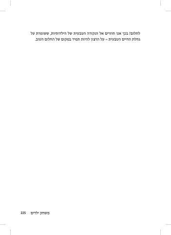 לחלום! בכך אנו חוזרים אל הנקודה הטבעית של הילדותיות, ששומרת על גחלת החיים הטבעית - על הרצון להיות תמיד במקום של החלום הטוב. משחק ילדים 225
