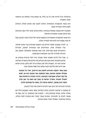 א. להכיר באמונה שאלו החיים תוך העמקה אמיתית מהי כנסת ישראל, מהי הפעולה שלה. וכשיודעים את הפנימיות לעומק, הצדדים החיצוניים אינם מפריעים. ואין שום מציאות שתקלקל ותעכב את