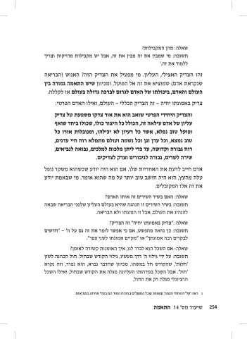 זהו הצדיק האצילי, העליון. מי מפעיל את הצדיק הזה? האנוש (הבריאה שנקראת אדם) שמוציא את זה אל הפועל. ומכיוון שיש התאמה גמורה בין העולם והאדם, ביכולתו של האדם לגרום לברכה גדולה בעולם או לקללה.
