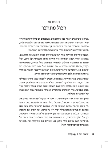 כשמתבוננים בהתרחשויות במציאות, מנסים למצוא כמה שיותר הבדלים והגדרות, כדי שיהיה לנו קל להתייחס לכל אחת מהמציאויות ולאפיין אותה. אבל דווקא גישה הפוכה למחשבה הרגילה שלנו תוביל אותנו להבנה איך הכול מתקשר, איך ההבדלים מתחברים לפעולה משותפת ומה המשמעות