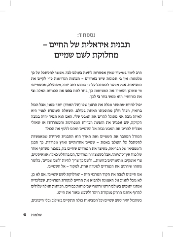 המודל המחבר את השמיים ואת הארץ הוא התבנית היחידה שמאפשרת להסתכל על העולם באמת - שמיים אחדותיים וארץ מפורדת. כך תכנן ה'ממציא' של הבריאה, כשיצר את הנפרדים שחיים בה, במכנה משותף אחד של כוח אין־סופיותו. אבל כשנוצרו ה'נפרדים', הם בהחלט כאלו: אגואיסטים, צרי אופקים, מתעניינים בזוטות... ולשם כך צריך להיות 'לשם שמיים', כלומר