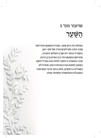 העולם הזה הוא שער, נקודת המפגש המדויקת שבה האין-סוף לובש צורה של סוף. כאן, בנקודת התפר הזו שבין האלוקי והארצי, מתרחש המפגש החי בין האדם ובין בוראו. עבור המאמין זו הזמנה לגלות את הגודל דווקא בקוטן; למצוא את הנוכחות האין-סופית לא בשמיים הרחוקים, אלא בתוך פרטי המציאות המוגבלת והמוחשית המקיפה אותו.