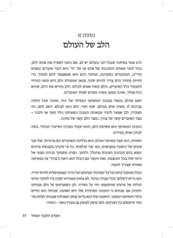 ועוד שיתופים בין הפרטים. הלב עוסק לעומק גם בעניין נוסף - השיווי. האדם הלבבי האחד 57