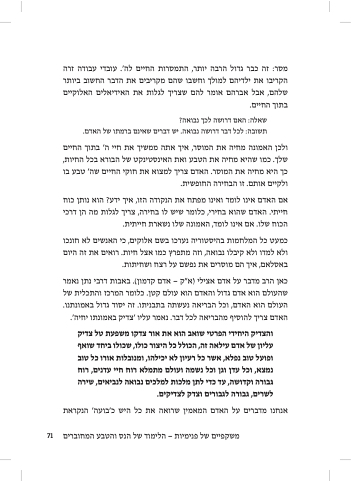 ולכן האמונה מחיה את המוסר, איך אתה ממשיך את חיי ה' בתוך החיים שלך. כמו שהיא מחיה את הטבע ואת האינסטינקט של הבורא בכל החיות, כך היא מחיה את המוסר. האדם צריך למצוא את חוקי החיים שה' טבע בו