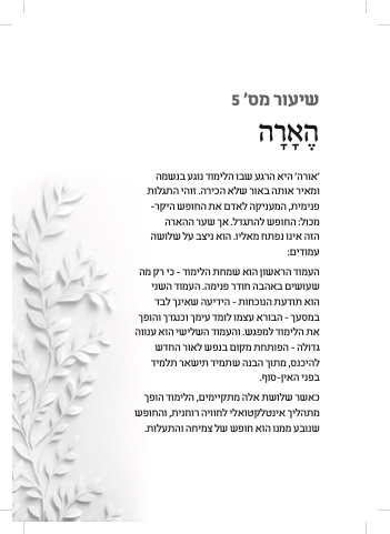 ׳אורה׳ היא הרגע שבו הלימוד נוגע בנשמה ומאיר אותה באור שלא הכירה. זוהי התגלות פנימית, המעניקה לאדם את החופש היקר- מכול: החופש להתגדל. אך שער ההארה הזה אינו נפתח מאליו. הוא ניצב על שלושה עמודים: