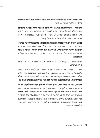 המדרגה הבאה נראית הפוכה. זו מדרגה שמשחררת לחופשי את הנשמה מ'אחיזה' ומאפשרת לה להרחיב את האלוקות בתוך המציאות. כדי לעלות אליה נדרשת המדרגה הקודמת שבה האדם מצליח לחיות מתוך הגילוי