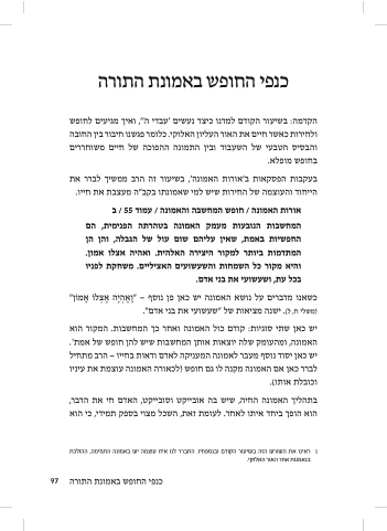 יש כאן שתי סוגיות: קודם כול האמונה ואחר כך המחשבות. המקור הוא האמונה, ומהעומק שלה יוצאות אותן המחשבות שיש להן חופש של אמת1. יש כאן יסוד נוסף מעבר לאמונה המעניקה לאדם ודאות בחייו - הרב מתחיל לברר כאן אם האמונה מקנה לו גם חופש (לכאורה האמונה עוצמת את עיניו