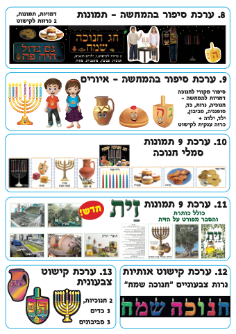 יפור מקורי לחנוכה דמויות להמחשה - חנוכיה, נרות, כד, ופגניה, ביבונ, ילד, ילדה + כרזה ענקית לקישוט