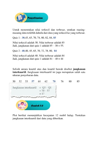 Jadi, jangkauan dari quiz 1 adalah 85 – 30 = 55.
