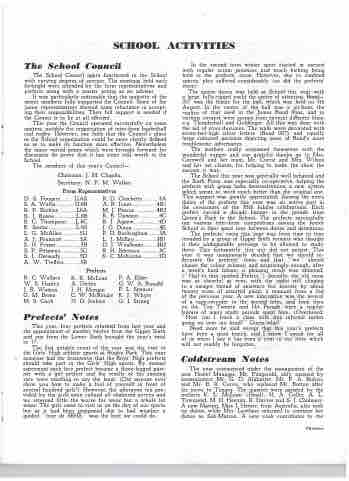 The School Council again functioned in the School with varying degrees of success. The meetings held each fortnight were attended by the form representatives and prefects along with a master acting as an adviser.