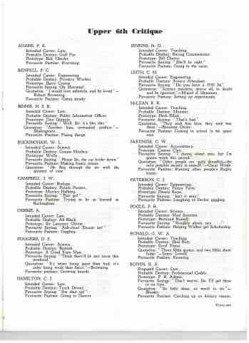 Probable Destiny: Truck Driver. Favourite Saying: "Aw shut up! " Favourite Pastime: Going to Dances.
