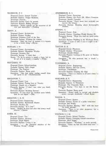 Favourite Pastime: "Working" in study periods. Quotation: " Come, my lad, and drink some beer". -