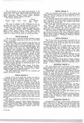 Seventh Grade B had a poor season, /laying nine games without a win, although in the secon round there were a few close scores. The forwards all played well with Macdonald and Hay driving the forwards well and Herbison taking the ball well in the line-out. He